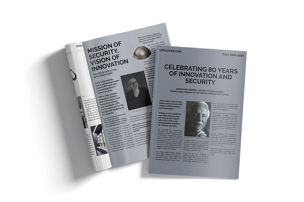 In questi otto decenni, Meroni ha creato un’eredità di design iconico italiano, dalle serrature che hanno adornato case e uffici fino a diventare un nome di fiducia nella sicurezza dei veicoli commerciali attraverso il marchio UFO Locks.